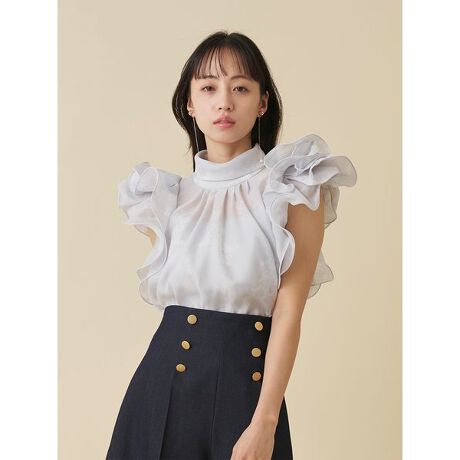 オーガンジーフリルブラウス