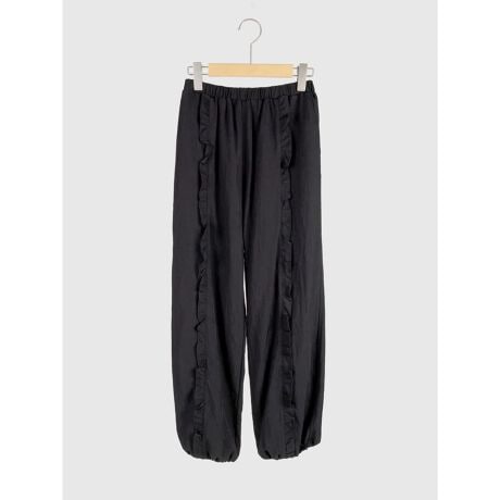 落ち感のある軽やかな素材がフリルのフェミニンさを程よく抑え、上品な印象をプラスします。