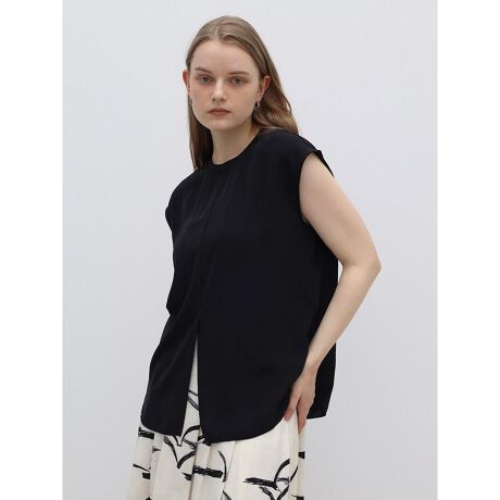 ミニマルなデザインにさりげないディテールを効かせたノースリーブトップス。フロントのスリットが抜け感を生み、シンプルながらも洗練された印象に。程よいゆとりで身体のラインを拾いすぎず、軽やかな素材感がリラクシーな着心地のアイテム。飽きの来ないデザインが着回しの効く、汎用性の高いトップスです。
