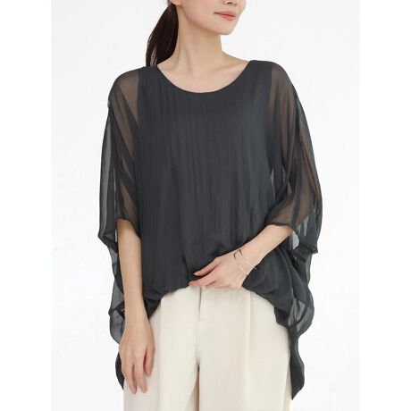 前後差をつけた裾や袖ぐりを大きくしたドルマンスリーブなど、エアリーな立体感をプラスするディテールで、女性らしい華やかな印象に。