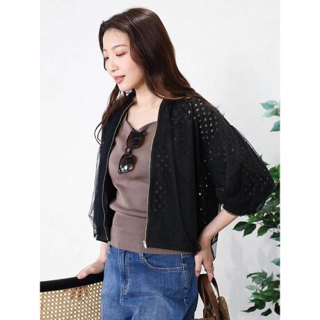 カットワークレースにチュールを重ねた、軽やかで華やかなブルゾン。