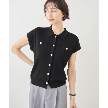 ・金ボタンフレンチスリーブポロカラーカーディガン(品番GDK16500)