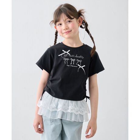 anyfam/anykids/エニィファム/エニィファムキッズ/キッズ/トップス/Tシャツ/半袖/リボン/プリント/ショート丈/ドロスト/人気/通園/通学/おでかけ/デイリー/女の子/ガール/サスティナブル商品/トレンド