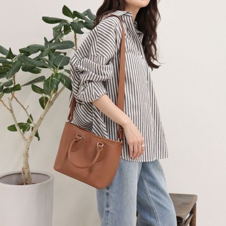 ・シボ感のあるフェイクレザーが上品な印象を与えるミニトート