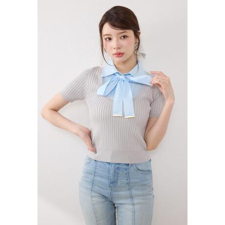 【マニッシュ×レディーなニットドッキングトップスのお目見え】■ポイントまるでシャツをレイヤードしているような、華やかなニットプルオーバーが完成。ドッキング仕様なので重ね着した時の独特のもたつきがなく、スッキリと着られる1着です。■ディテール温かすぎないサラッとした編地をニット部分に採用し、春□初夏、秋にも着やすい素材感を採用。ストレッチが効いているので、着心地もストレスフリーにご着用いただけます。シャツ部分はコットン×ポリエステルの生地を使用しておりシワになりずらいのもポイントです。前立て部分にはピンタックをほどこし、リボンを外した際も華やかな印象に仕上げてくれます。■スタイリングミニのボトムスとの相性が◎■生地透け感:なし裏 地:なし伸縮性:あり(ニット部分)光沢感:なし厚 さ:薄手■商品のお気に入り登録お気に入りアイテムの再入荷・在庫1点などの通知を受け取ることができます。[注意事項]※画像の商品はサンプルです。実際の商品と仕様、加工が若干異なる場合があります。※画像の商品は光の照射や角度、お使いのモニター環境により、実物と色味が異なる場合がございます。※着用、お取り扱いの際は、アテンションタグをご確認ください。