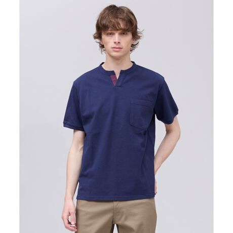 ■仕様襟元のキーネック仕様や、胸元のポケットなど、1枚でも着映えるデザイン。裾口にはブランドオーバルロゴ刺繍を配し、さりげないアクセントに。さらに製品染をすることでカジュアルな雰囲気に仕上げました。