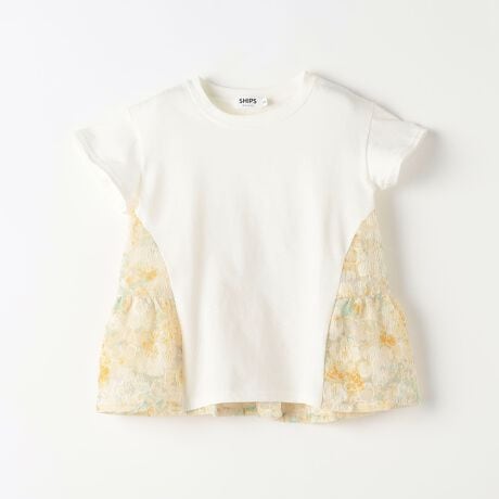 カットソーに花柄刺繍素材をドッキングしたトップス。