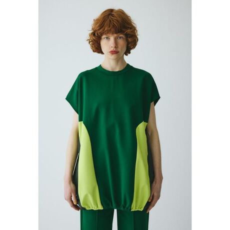 HeRIN定番のEGGシリーズ今季はカラーブロックにアップデートしました。同素材のサイクリングパンツ(530JSM81-2011 Ponte half pants)と合わせるスタイリングがおすすめです。表面が滑らかでハリのある、上質な印象を持つポンチ素材を使用。前身頃の両脇と後ろ身頃の下部のパーツは、シャリ感のある布帛素材を使用し、コントラストを表現しています。ドッキングエッグトップス[注意事項] ※画像の商品はサンプルです。実際の商品と仕様、加工が若干異なる場合があります。 ※画像の商品は光の照射や角度、お使いのモニター環境により、実物と色味が異なる場合がございます。 ※着用、お取り扱いの際は、アテンションタグをご確認ください。