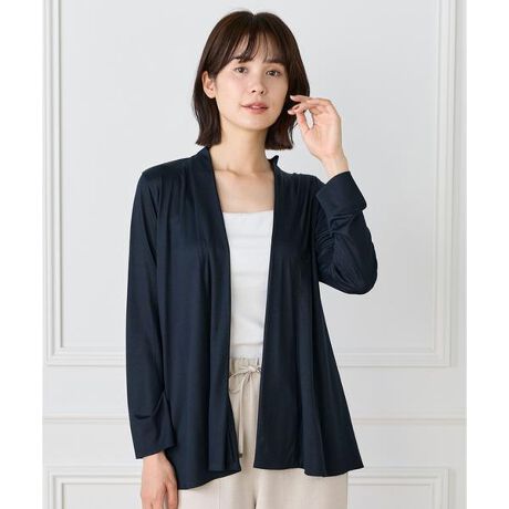 ■デザイン定番のニュアンスカーディガン。ボディラインをカバーする縦に流れる着流しシルエットがポイント。肩は程よいセットインできちんと感もあり、リッチな分量感と表情のある前端のデザインで上品に仕上げました。■素材テンセル特有のやわらかさとふくらみ、ポリエステルのドライ感と耐久性を兼ね備えたジャージ素材。ハイゲージの滑らかな表面感が特徴です。シルキーな光沢感が美しく、ソフトなタッチとリッチなドレープ性もポイントです。さらりとした心地よい肌触りで着心地が良く、長時間着用しても肩の凝らない素材感も魅力です。吸湿性、放出性が高く快適に着ていただける素材です。・水洗い可■サンプル撮影商品画像の商品はサンプルです。実際の商品とはサイズや色味、素材、デザイン等の仕様が若干変更になる場合がございます。■カラーについては、可能な限り実際の商品に近いカラーで撮影をおこなっておりますが、照明の関係により実際の製品とは色味が違って見える場合があります。またパソコン・スマートフォンなどの環境により、若干製品と画像のカラーが異なる場合もございます。現物と画像のカラー差異については返品理由となりませんので、予めご了承ください。■サイズ表記はあくまで目安となります。