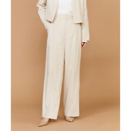 ■デザイン2タックデザインと自然に広がるセミワイドシルエットで分量感がありつつも、ヒップ周りをコンパクトにすることで女性らしいメリハリのあるバランスに。ミニマルな印象でどんなスタイリングにも馴染み、幅広いシーンで活躍してくれる万能なアイテム。小柄な方も高身長な方も綺麗に穿いていただけます。フラットシューズやスニーカーでも美脚になれるパンツです。■素材メゾン系ブランドも手がけるイタリアのメーカー、ポンテトルトのファブリックを採用。通気性や吸湿性に富む夏に最適な原料麻を縦糸に100%使用、強撚ヴィスコースストレッチと組み合わせることで清涼感あふれるタッチ(肌触り)とコンフォートネス(ストレッチ)も加えたオールマイティに使用頂けるSummerCompactPlain。・裏地無し・ポケットあり・ウエスト後ろゴム仕様同素材のダブルブレストジャケット品番:7160141813同素材のスペンサージャケット品番:7160141814■サンプル撮影商品画像の商品はサンプルです。実際の商品とはサイズや色味、素材、デザイン等の仕様が若干変更になる場合がございます。■カラーについては、可能な限り実際の商品に近いカラーで撮影をおこなっておりますが、照明の関係により実際の製品とは色味が違って見える場合があります。またパソコン・スマートフォンなどの環境により、若干製品と画像のカラーが異なる場合もございます。現物と画像のカラー差異については返品理由となりませんので、予めご了承ください。■サイズ表記はあくまで目安となります。