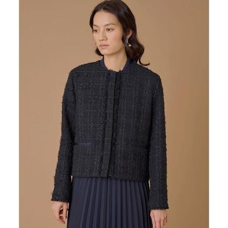 《大きいサイズ》ノーカラーツイードジャケット《LINTON》