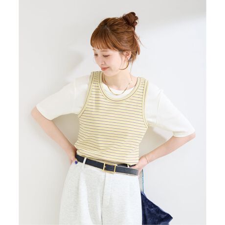 ボーダーのタンクトップとベーシックなTシャツの2枚組で、しっとりとなめらかな着心地が魅力です。今年はタンクトップをTシャツの上に重ねたレイヤードスタイルがおすすめ。シンプルな中に程よいアクセントが生まれ、こなれた印象に仕上がります。それぞれ単品でも着回しができ、デイリーに活躍する万能アイテム。オリジナルイラスト入りのパッケージで、ギフトにもぴったりの一品です。