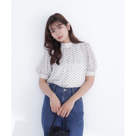 表情のあるカットドビー素材を使用したハイネックブラウス。ふんわりとしたパフスリーブが腕をすっきり見せてくれます。程よいきちんと感があり、オンオフ問わず活躍。一枚で着映えし、スタイリングを上品に演出します。<素材>凹凸感のあるカットドビー素材を使用。軽やかで肌離れがよく、快適な着心地です。<詳細>仕様・後ろボタン裏地・あり透け感・なし / 光沢・なし / 伸縮性・なし生地の厚さ・薄手※モデルの着用画像の場合、光の当たり具合により、実際の色味と異なって見えることがございます。色味は、商品単体の画像をご参照ください。