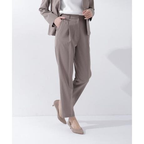 ワンタック入りで腰まわりに程よいゆとりを持たせたパンツ。センタープレスが脚をすっきりと見せてくれます。後ろウエストはゴム仕様で、きちんと見えとはき心地の良さを両立。オンオフ問わず活躍し、同素材のジャケットとのスーツスタイルもおすすめです。<素材>マシンウォッシャブル、接触冷感、UVカットを備えた素材です。<詳細>仕様・前ファスナー裏地・なし透け感・なし / 光沢・なし / 伸縮性・あり生地の厚さ・普通<シリーズ>■ノーカラージャケット[品番:0176250600] ■テーラードジャケット[品番:0176250601] ■ノータックパンツ[品番:01756230601] ※モデルの着用画像の場合、光の当たり具合により、実際の色味と異なって見えることがございます。色味は、商品単体の画像をご参照ください。