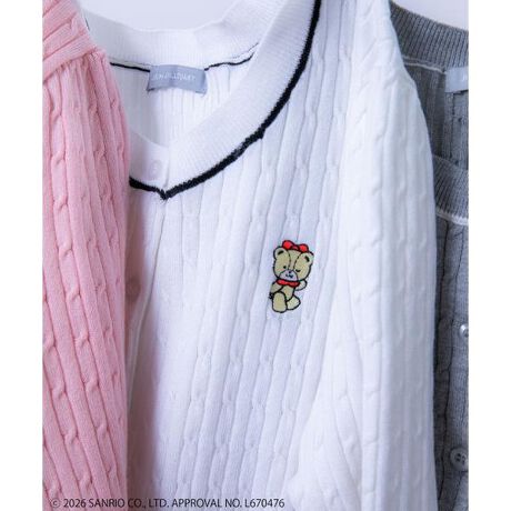 人気キャラクターのおともだち「リボンをしたクマ」とのコラボアイテム!6きょうだいに合わせた6色展開の半袖ニットカーディガン。襟ぐりと袖口の配色ラインがアクセントで、きょうだいのカラーではなくコーディネートしやすい配色になっています。カーディガンとしてはもちろん、前を閉めてトップスとしても着用できます。デニムやパンツと合わせやすいデザインです。※撮影時照明の関係により、色味が違って見える場合がございます。またパソコン・スマートフォンなどの環境により、若干製品と画像のカラーが異なる場合もございます。予めご了承ください。商品の色味は、商品単品画像をご参照下さい。※商品画像はサンプルのため、色味やサイズ等の仕様に変更がある場合がございますので、予めご了承ください。
