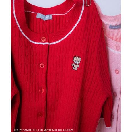 人気キャラクターのおともだち「リボンをしたクマ」とのコラボアイテム!6きょうだいに合わせた6色展開の半袖ニットカーディガン。襟ぐりと袖口の配色ラインがアクセントで、きょうだいのカラーではなくコーディネートしやすい配色になっています。カーディガンとしてはもちろん、前を閉めてトップスとしても着用できます。デニムやパンツと合わせやすいデザインです。※撮影時照明の関係により、色味が違って見える場合がございます。またパソコン・スマートフォンなどの環境により、若干製品と画像のカラーが異なる場合もございます。予めご了承ください。商品の色味は、商品単品画像をご参照下さい。※商品画像はサンプルのため、色味やサイズ等の仕様に変更がある場合がございますので、予めご了承ください。
