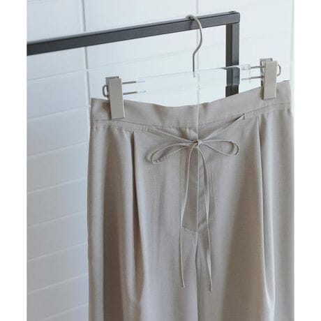 【ちょうど、いい服】さらりと軽く、風通しのよいリネンライクな素材感。一本できれいさも快適さも“ちょうどいい”。夏のワードローブの主役。□マシンウォッシャブル □洗ってもシワになりづらいウエストリボンがポイントのイージーワイドパンツ。後ろウエストはゴム仕様でリラクシーなはき心地です。ゆったりとしたワイドシルエットでこなれた印象を演出し、フロントはすっきり見えするデザインでトップスインもキレイに決まる一本です。<素材>ドライタッチな麻調素材を使用しています。<詳細>仕様・前ファスナー裏地・オフホワイトとライトベージュはあり透け感・なし / 光沢・なし / 伸縮性・なし生地の厚さ・普通※モデルの着用画像の場合、光の当たり具合により、実際の色味と異なって見えることがございます。色味は、商品単体の画像をご参照ください。