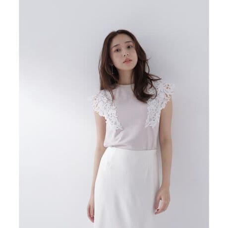 袖先に存在感のあるレースモチーフをあしらったフェミニンなデザインカットソー。フレンチスリーブで肩まわりをすっきりと見せてくれます。シンプルな身頃とのコントラストで、レースの存在感を引き立てるデザイン。一枚で着映える上品なアイテムです。<素材>表面が整った薄手のポンチ素材を使用しています。<詳細>仕様・開閉なし裏地・なし透け感・なし / 光沢・なし / 伸縮性・あり生地の厚さ・普通※モデルの着用画像の場合、光の当たり具合により、実際の色味と異なって見えることがございます。色味は、商品単体の画像をご参照ください。