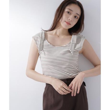 ショルダーリボンボーダートップス