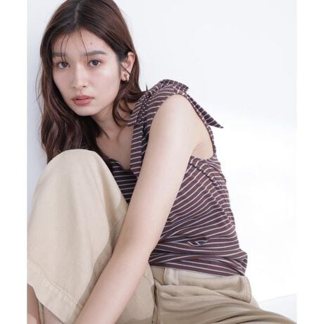 ショルダーリボンボーダートップス