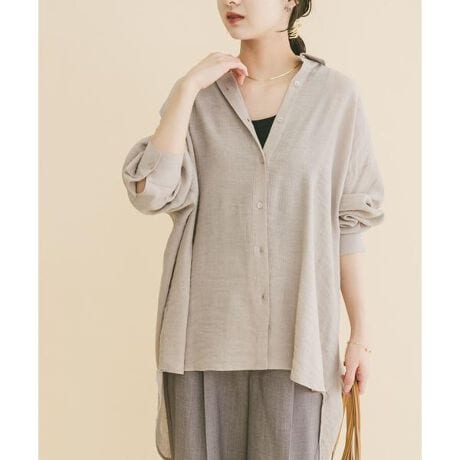 表情のあるヨウリュウ素材を使用したシアーシャツは、縦に入ったシボ感がさりげなく奥行きをプラスし、涼しげで上品な印象に。肌離れの良いさらっとした着心地で、暑い季節も快適に過ごせます。ゆとりのあるシルエットと前後差のある丈感で、自然と抜け感のあるスタイリングが完成。1枚で着るのはもちろん、羽織りとしても活躍し、レイヤード次第で幅広い着こなしが楽しめる一着です。