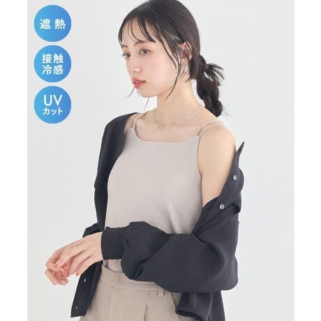 着心地の良さと機能性を兼ね備えたキャミソールは、毎日のコーデに欠かせない一枚です。カップ付きなので一枚で着用でき、忙しい朝もさっと準備が整います。カップが縫い付けられているのでバストが横流れしにくく、自然できれいなシルエットをキープしてくれます。テレコ素材が程よく伸びて体にフィットし、動きやすさも抜群です。UVカットや接触冷感、遮熱機能が備わっているため、日差しの強い日でも安心して着用できます。シンプルなデザインで重ね着にも使いやすく、カジュアルからきれいめまで幅広く対応できるのが魅力です。