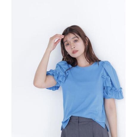 身頃は着心地の良いカットソー素材を、袖は布帛のフリルデザインで華やかさをプラスした異素材ドッキングトップス。一枚で着映えるデザインに仕上げ、ほどよいボリュームフリルスリーブが気になる腕まわりをカバーします。<素材>身頃はスムースカットソー、袖はハリのある布帛素材を使用しています。<詳細>仕様・後ろボタン裏地・なし透け感・なし / 光沢・なし / 伸縮性・あり生地の厚さ・普通※モデルの着用画像の場合、光の当たり具合により、実際の色味と異なって見えることがございます。色味は、商品単体の画像をご参照ください。