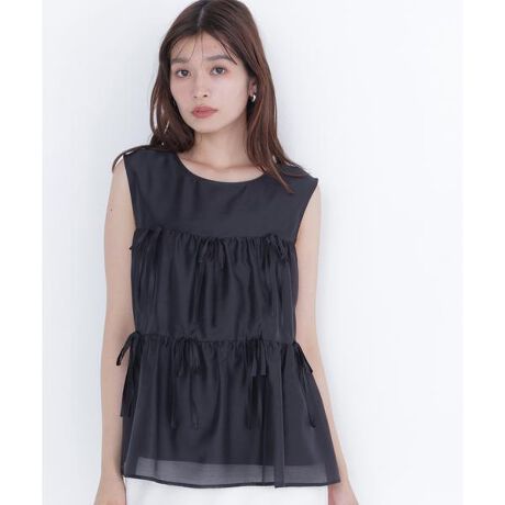 リボンディテールが全体に散りばめられたティアードチュニックブラウス。ほんのり透けるシアー素材の軽やかさが甘さを抑え、大人フェミニンな印象に見せてくれます。ふんわり広がるシルエットが体型をカバー。シンプルなボトムと合わせるだけで、洗練されたフェミニンスタイルが完成します。<素材>やや光沢感のあるシアー素材を使用しています。<詳細>仕様・後ろボタン裏地・あり透け感・ややあり / 光沢・ややあり / 伸縮性・なし生地の厚さ・普通※モデルの着用画像の場合、光の当たり具合により、実際の色味と異なって見えることがございます。色味は、商品単体の画像をご参照ください。