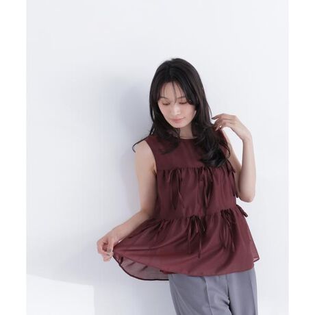 リボンディテールが全体に散りばめられたティアードチュニックブラウス。ほんのり透けるシアー素材の軽やかさが甘さを抑え、大人フェミニンな印象に見せてくれます。ふんわり広がるシルエットが体型をカバー。シンプルなボトムと合わせるだけで、洗練されたフェミニンスタイルが完成します。<素材>やや光沢感のあるシアー素材を使用しています。<詳細>仕様・後ろボタン裏地・あり透け感・ややあり / 光沢・ややあり / 伸縮性・なし生地の厚さ・普通※モデルの着用画像の場合、光の当たり具合により、実際の色味と異なって見えることがございます。色味は、商品単体の画像をご参照ください。