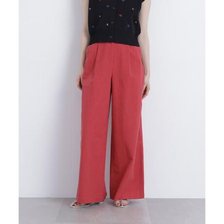 麻を含むカジュアルでナチュラルな素材感が特徴の夏にぴったりなワイドパンツ。後ろウエストは一部ゴム仕様で、リラックスしたはき心地です。深みのあるレッドと万能なベージュの2色展開です。<素材>麻混のナチュラルなシワ感が特徴的なカジュアルな素材を使用。<詳細>仕様・前ファスナー裏地・なし透け感・ややあり / 光沢・なし / 伸縮性・なし生地の厚さ・薄手※モデルの着用画像の場合、光の当たり具合により、実際の色味と異なって見えることがございます。色味は、商品単体の画像をご参照ください。