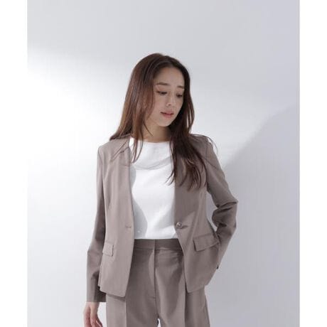 少し立ち上がったネックラインが顔まわりをすっきりと見せる、上品なノーカラージャケット。フロントは1つボタン仕様で、ミニマルかつ洗練されたデザインがポイント。袖口にはスリットを入れ、さりげない抜け感と着こなしのアレンジを楽しめます。同素材のパンツと合わせれば、通勤からキレイめシーンまで活躍するスーツスタイルが完成します。<素材>マシンウォッシャブル、接触冷感、UVカットを備えた素材です。<詳細>仕様・前ボタン裏地・なし透け感・なし / 光沢・なし / 伸縮性・あり生地の厚さ・普通<シリーズ>■テーラードジャケット[品番:0176250601] ■ワンタックパンツ[品番:0176230600] ■ノータックパンツ[品番:01756230601] ※モデルの着用画像の場合、光の当たり具合により、実際の色味と異なって見えることがございます。色味は、商品単体の画像をご参照ください。