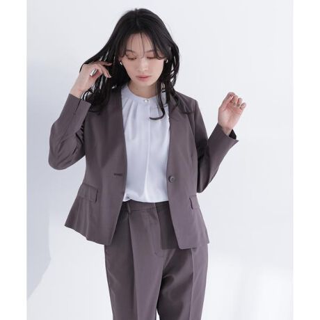 少し立ち上がったネックラインが顔まわりをすっきりと見せる、上品なノーカラージャケット。フロントは1つボタン仕様で、ミニマルかつ洗練されたデザインがポイント。袖口にはスリットを入れ、さりげない抜け感と着こなしのアレンジを楽しめます。同素材のパンツと合わせれば、通勤からキレイめシーンまで活躍するスーツスタイルが完成します。<素材>マシンウォッシャブル、接触冷感、UVカットを備えた素材です。<詳細>仕様・前ボタン裏地・なし透け感・なし / 光沢・なし / 伸縮性・あり生地の厚さ・普通<シリーズ>■テーラードジャケット[品番:0176250601] ■ワンタックパンツ[品番:0176230600] ■ノータックパンツ[品番:01756230601] ※モデルの着用画像の場合、光の当たり具合により、実際の色味と異なって見えることがございます。色味は、商品単体の画像をご参照ください。