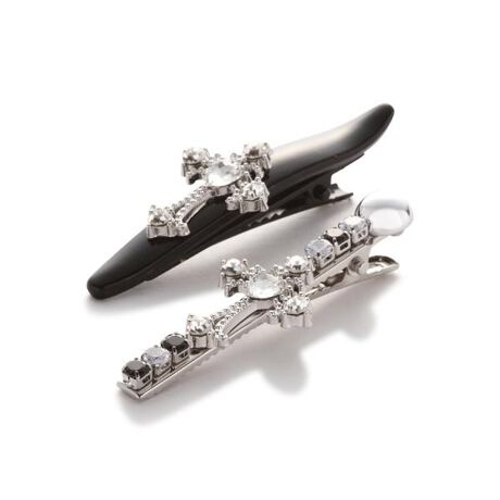 クロスモチーフにラインストーンをあしらった華やかさとエッジを兼ね備えたヘアピン。