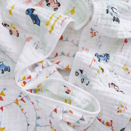 コットンモスリンは、伝統的におくるみとして愛用されてきた通気の良い素材。細やかな織りが特徴で、ムレを防ぎながら、体温調整がまだ難しい赤ちゃんを快適にサポートします。