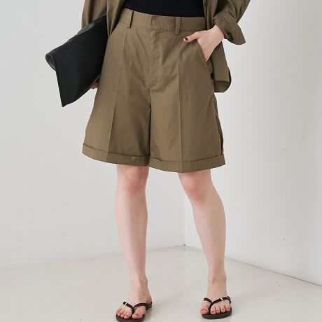 裾に折り返しをつけることで、カジュアルになりすぎないショートパンツです。脇のボックスタックがフォルムをキープし、落ち着きのあるシルエットに仕上げています。シャツ(31520010010)とセットアップで着用でき、上下で別々の色を組み合わせるのも新鮮です。ラベンダーとブラウンの2色展開です。