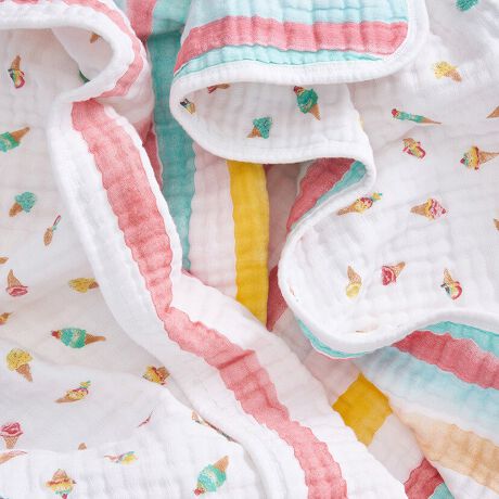 コットンモスリン素材でつくられたダブルガーゼ4層構造のブランケットです。