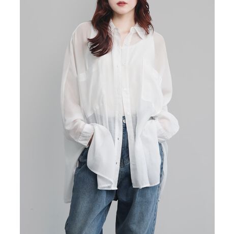 薄着の季節にも心強いエアリーなシアー生地で涼やかなドルマンシャツ