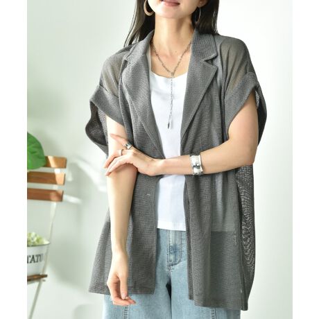 サラサラした肌さわりで柔らかいスラブメッシュ素材を使用。スリーブレスは腕が動かしやすく蒸れにくいので、暑い季節でも快適に過ごせます。またきっちりし過ぎず、ラフ過ぎない絶妙なリラックス感も◎