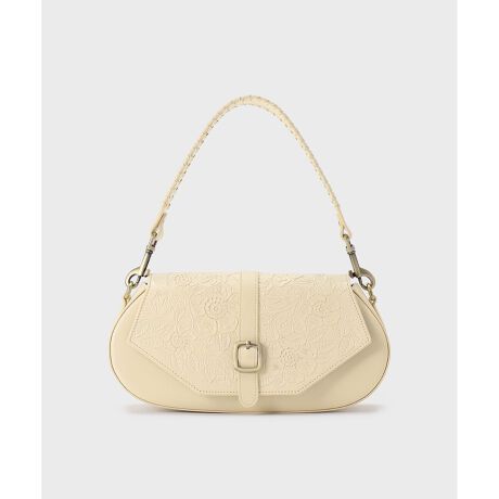 丸みのある横長のシルエットで、ローリングステッチを施したハンドルとフラップのデザインカットがポイント。