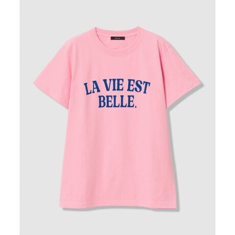 大人のスタイリングの外しに効かせたい一枚、[ LA VIE EST BELLE.](人生は美しい!)と謳った限定のロゴT。白に赤のロゴ、ピンクにネイビーのロゴがコーディネートの遊び心に。ジャケットや春ブルゾンのインナーに入れたり、夏にはさらっと一枚で楽しめるグラフィックTシャツです。