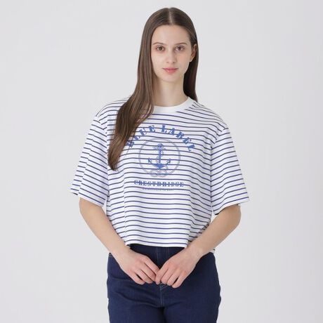 ヨットのイカリモチーフが、夏らしいプレッピームードを演出し、マリンスタイルにぴったりの一枚です。