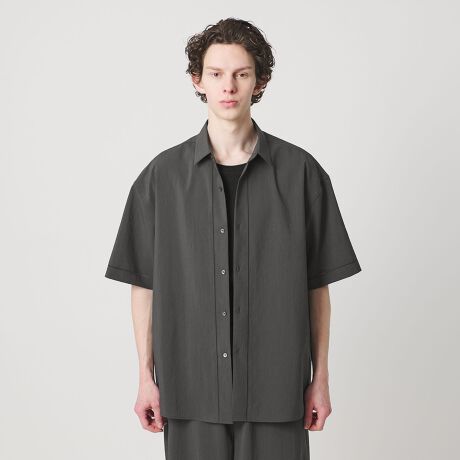 ウールライクなキレイ目の素材感ながらも麻のような肌離れの良さが特徴の<monkey time>夏の定番素材「RENUトロピカル」を使用した半袖シャツ。
