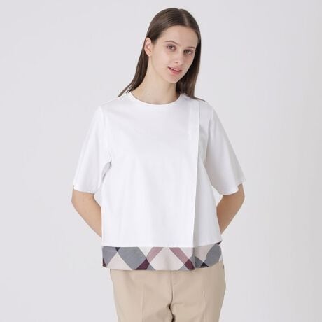 裾にはバイアスチェックをあしらい、シンプルな中にもトラッド感をプラスした他にはない一枚です。