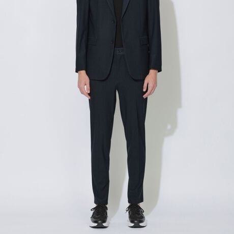 ファッション性と機能性を兼ね備えたスポーティーなカジュアルウェアコレクション【BLACK lab.】から、高機能素材セットアップトラウザーズが登場します。ウエストのサイド部分にのみゴムシャーリングを施すことで、快適な履き心地とスッキリとしたシャープなシルエットを両立させています。ビジネスからカジュアルまで両方の用途に使用できるデザインです。