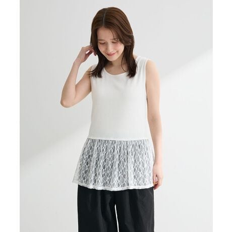 さりげないレースで華やぐ大人のレイヤードトップス裾にあしらわれたレースが、シンプルなコーディネートにやさしい華やかさを添える一枚です。ドッキングデザインなので重ね着のような見え方が簡単に楽しめ、忙しい日でもコーディネートがすぐに決まります。タンクトップ仕様でインナーとしても使いやすく、トップスの裾からちらりと見せるだけでこなれた印象を演出できます。カラーごとに異なるレースデザインも魅力で、選ぶ楽しさも広がります。カジュアルにもきれいめにもなじみやすく、日常使いからお出かけまで幅広く活躍する着回し力の高いアイテムです。透け感[ややあり]