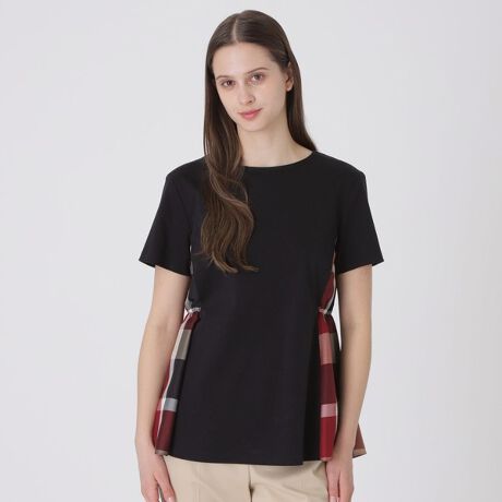 両脇にチェック柄をあしらったデザインカットソー。