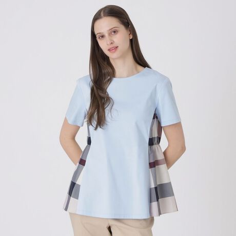 両脇にチェック柄をあしらったデザインカットソー。
