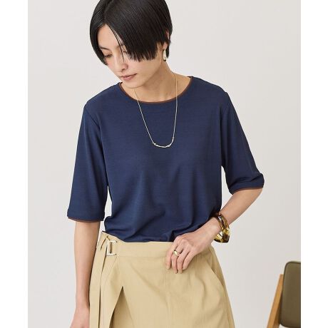 薄手のシアーリブ素材を使用した、襟ぐりと袖口の配色リブがポイントのプルオーバー。軽やかで柔らかな風合いは春夏の一枚着やレイヤードにぴったりです。肘上〜肘下の程よい袖丈でバランスよく着られ、インでもアウトでも決まるすっきりしたシルエットはクリーンなワントーンからデニムやワイドパンツのカジュアルスタイルまで幅広く活躍します。※モデル着用画像は、光の当たり具合で色味が違って見える場合がございます。※お使いのモニター環境によって商品の色味が違って見える場合がございます。