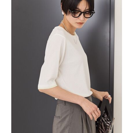 薄手のシアーリブ素材を使用した、襟ぐりと袖口の配色リブがポイントのプルオーバー。軽やかで柔らかな風合いは春夏の一枚着やレイヤードにぴったりです。肘上〜肘下の程よい袖丈でバランスよく着られ、インでもアウトでも決まるすっきりしたシルエットはクリーンなワントーンからデニムやワイドパンツのカジュアルスタイルまで幅広く活躍します。※モデル着用画像は、光の当たり具合で色味が違って見える場合がございます。※お使いのモニター環境によって商品の色味が違って見える場合がございます。