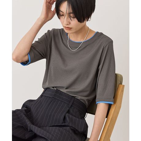 薄手のシアーリブ素材を使用した、襟ぐりと袖口の配色リブがポイントのプルオーバー。軽やかで柔らかな風合いは春夏の一枚着やレイヤードにぴったりです。肘上〜肘下の程よい袖丈でバランスよく着られ、インでもアウトでも決まるすっきりしたシルエットはクリーンなワントーンからデニムやワイドパンツのカジュアルスタイルまで幅広く活躍します。※モデル着用画像は、光の当たり具合で色味が違って見える場合がございます。※お使いのモニター環境によって商品の色味が違って見える場合がございます。